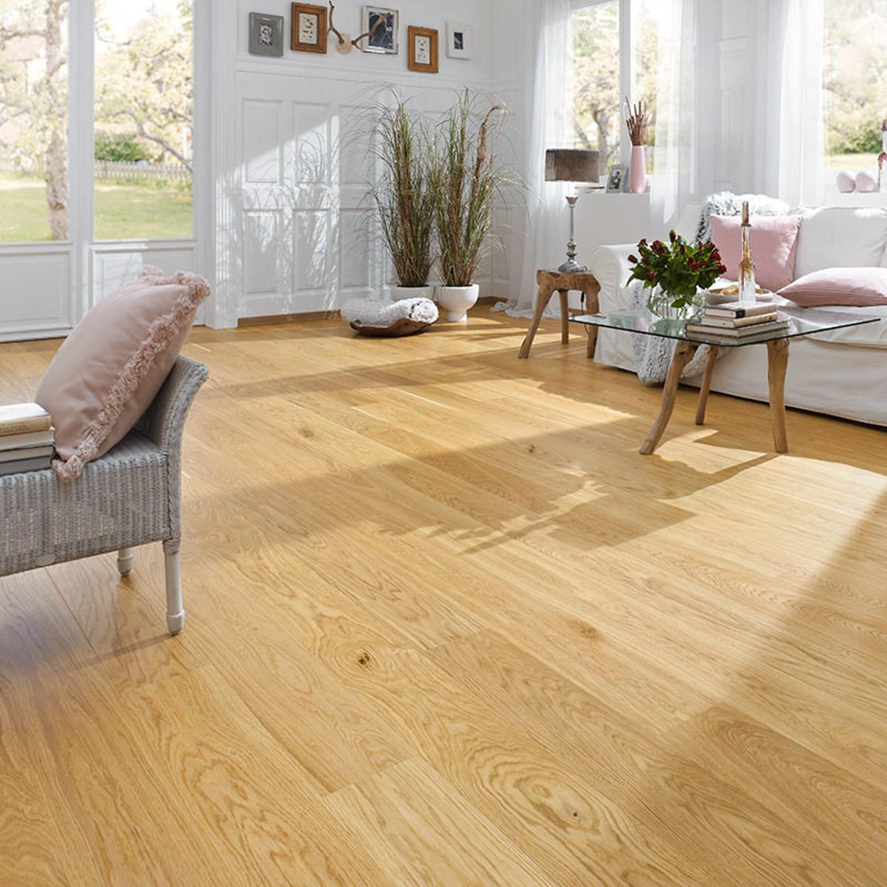 Dieses Produkt wird mit einer wohnfertigen Oberfläche gefertigt. Es ist keine Endbehandlung nach der Verlegung notwendig. Wir empfehlen jedoch bei geölten und gewachsten Oberflächen eine Erstpflege mit unserem Oli Holzpflegeöl bzw. Oli Holzpflegewachs vorzunehmen. Die laufende Unterhaltsreinigung sollte nebelfeucht mit Oli HOLZBODENSEIFE (Öl- oder Wachsoberflächen) oder Oli PARKETTWISCHPFLEGE (Lackoberflächen) als Zusatz zum Wischwasser durchgeführt werden.